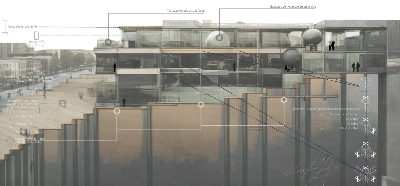 El Centro de Esparcimiento, Capacitación y Cultura (CEEC), ubicado en el corazón de Cuernavaca, Morelos, se erige como un faro urbano que rompe con las barreras invisibles del centro histórico. Enclavado en un terreno colindante con la majestuosa barranca de Amanalco, este proyecto desciende de manera escalonada, adaptándose suavemente a las curvas de nivel del terreno y respetando al máximo la topografía y vegetación preexistente. Concebido bajo principios de sustentabilidad, el edificio integra una abundante vegetación, tanto en sus exteriores como en sus espacios interiores, fusionándose con el entorno natural. En su nivel de acceso, el CEEC ofrece una biblioteca pública, una sala de exposiciones, una cafetería y las áreas administrativas, invitando a la comunidad a participar en la vida cultural de la ciudad. En el sótano 1, se encuentran los espacios dedicados a la educación y talleres, mientras que en el sótano 2, una gran cafetería y salones para actividades culturales como música, baile y teatro, culminan con un amplio mirador desde donde se puede apreciar la belleza de la barranca de Amanalco. Este proyecto no solo busca ser un centro de cultura y esparcimiento, sino también un espacio de integración social y ambiental, promoviendo una nueva relación entre la ciudad y su entorno natural.